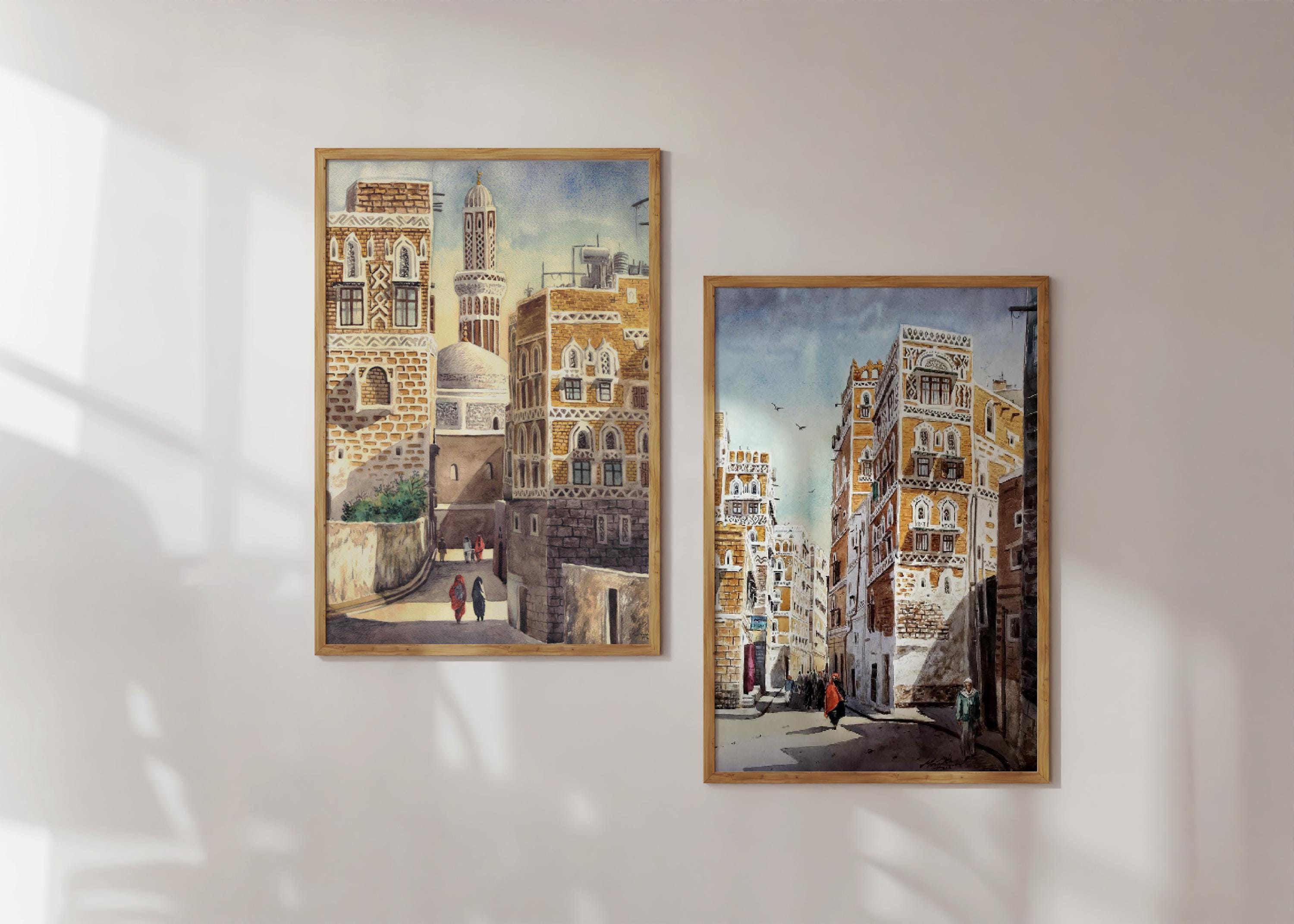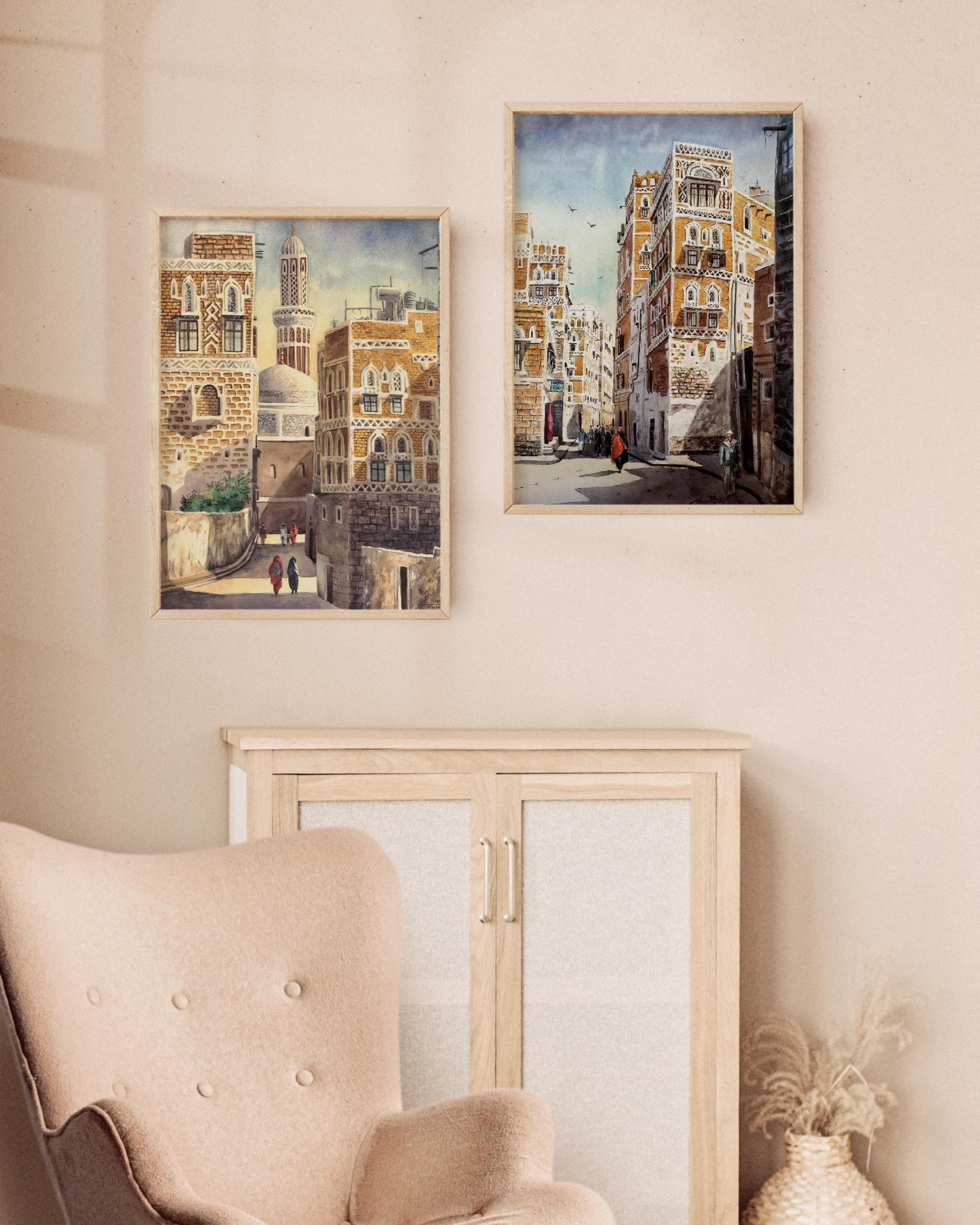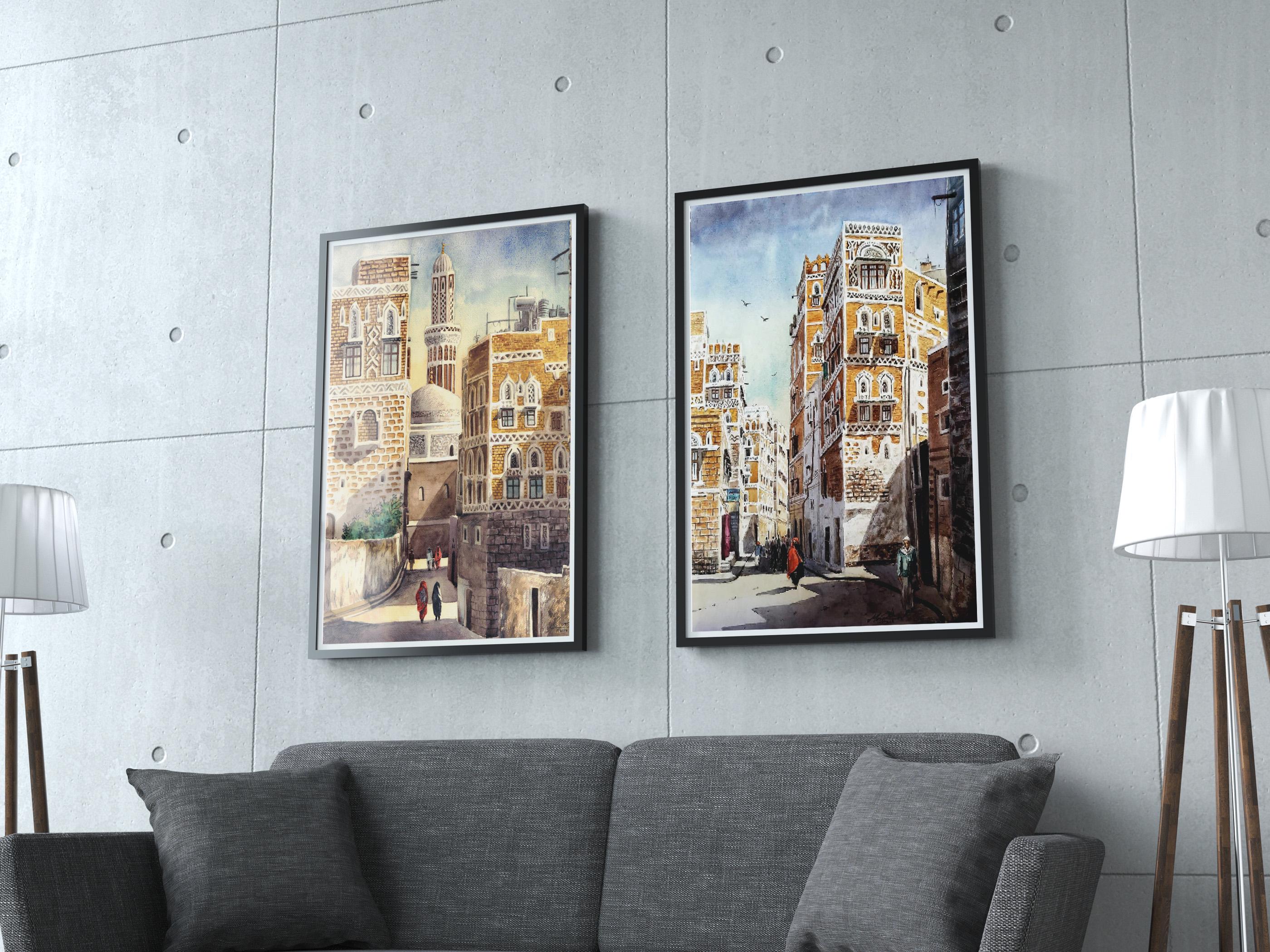 Yemeni Artwork | Yemeni Streets | Yemen Painting | Old city of Sanaa | Instant Download | Print at home | Islamic Gift | Digital Wall Art