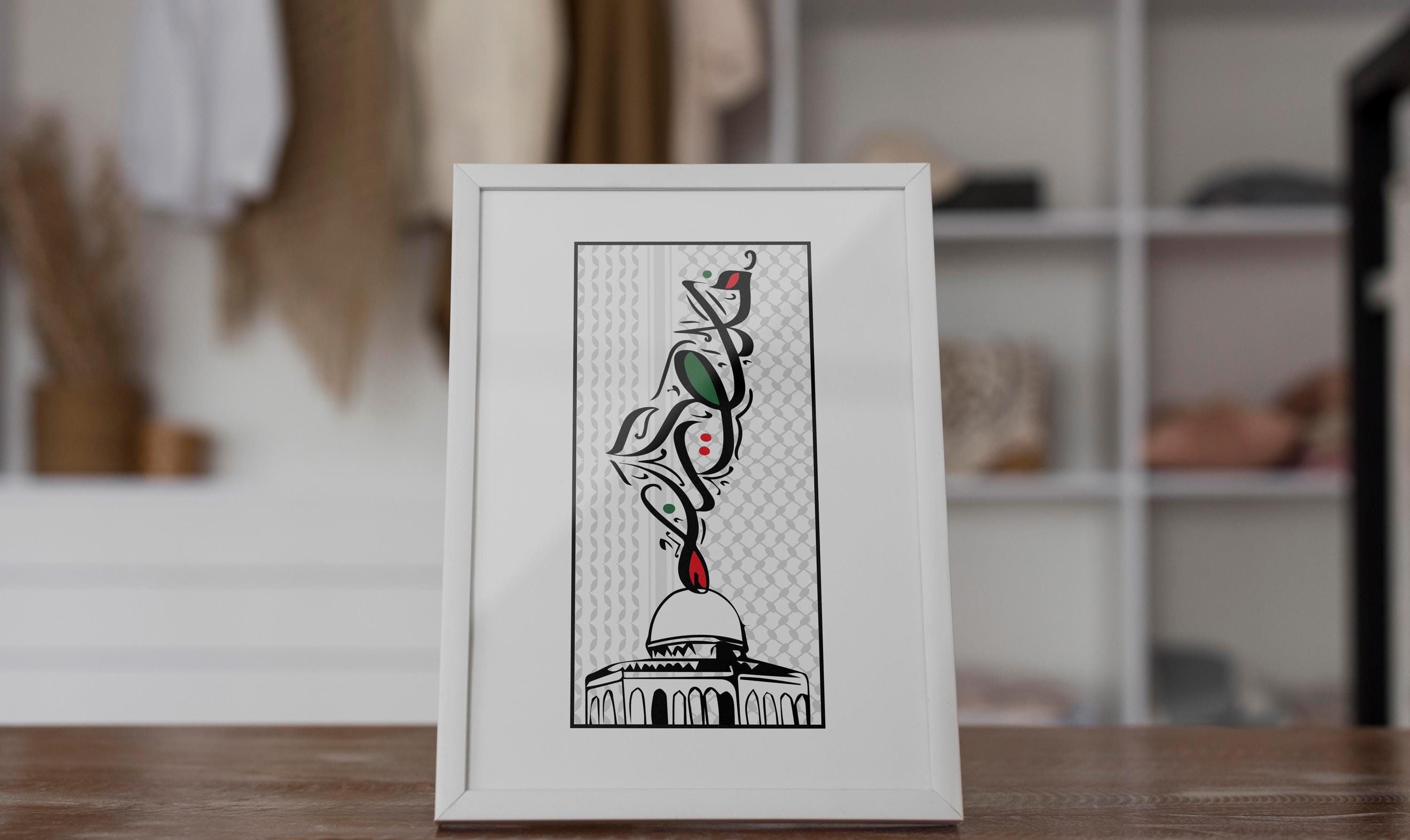 - Unique design combining Palestinian keffiyeh pattern with Arabic calligraphy of Al Aqsa Mosque